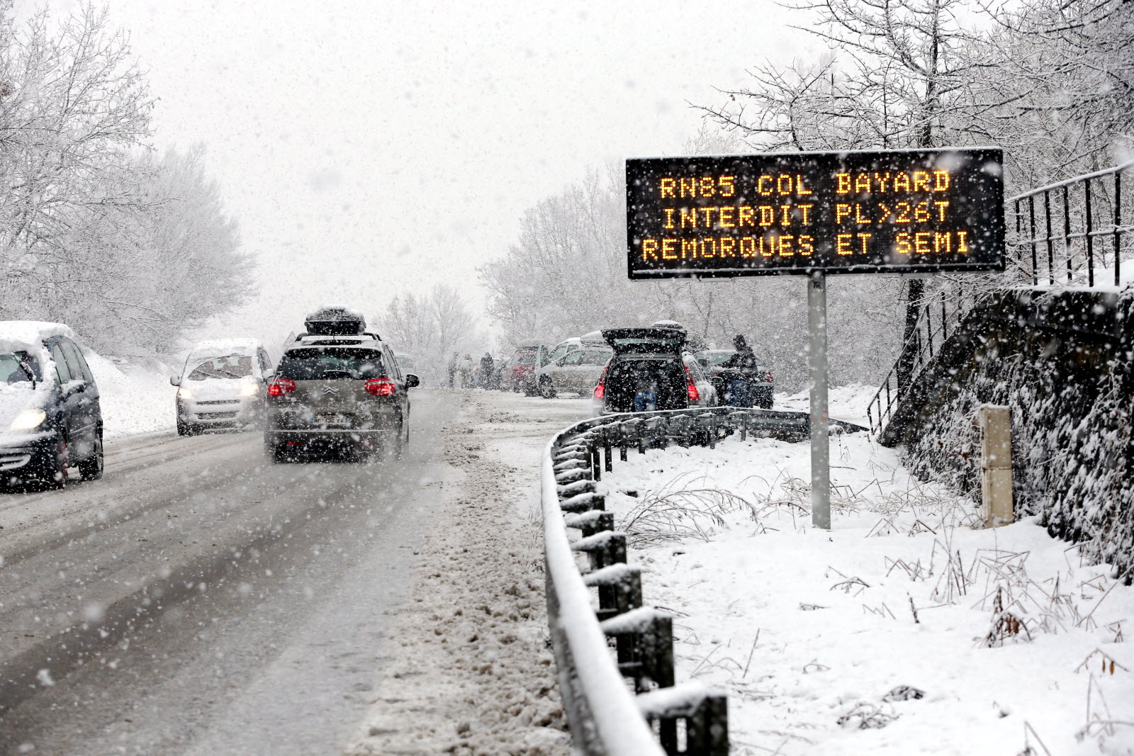 Un téméraire qui roule en moto sur une route un peu enneigée, qui nous explique son gps signale un bouchon tellement il roule lentement…